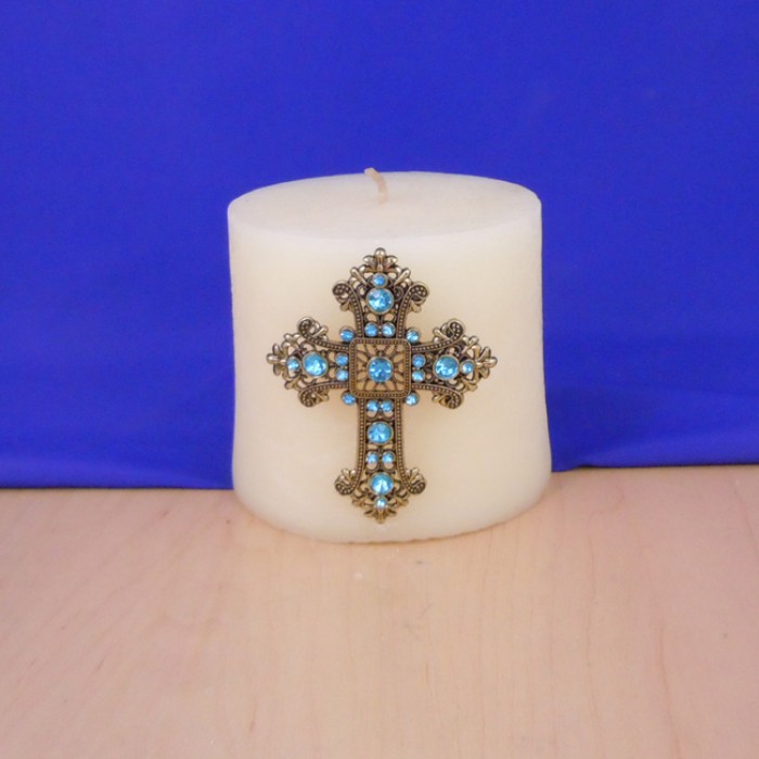CLEAR STONE CANDLE PIN W / CROSS