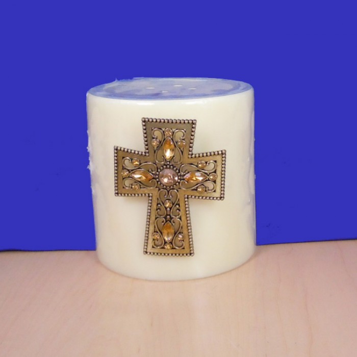 1028AM - AMBER STONE CANDLE PIN W / CROSS