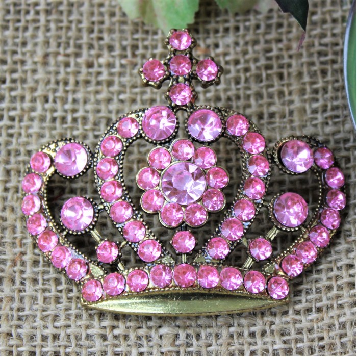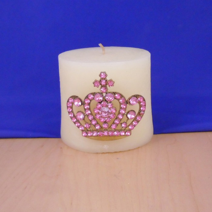 1032PK - PINK STONE CANDLE PIN W / CROWN