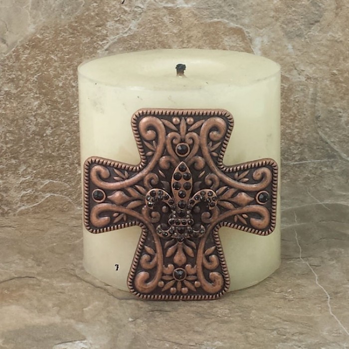 COPPER CROSS CANDLE PIN W / BLACK STONE FDL
