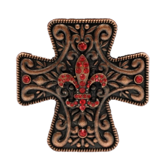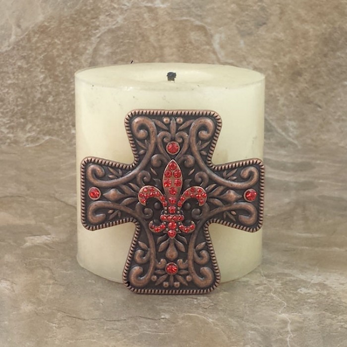 COPPER CROSS CANDLE PIN W / RED STONE FDL