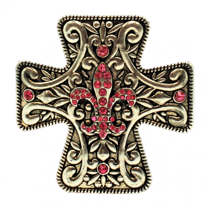 7001-SIL-PINK - SILVER CROSS CANDLE PIN W / PINK STONE FDL