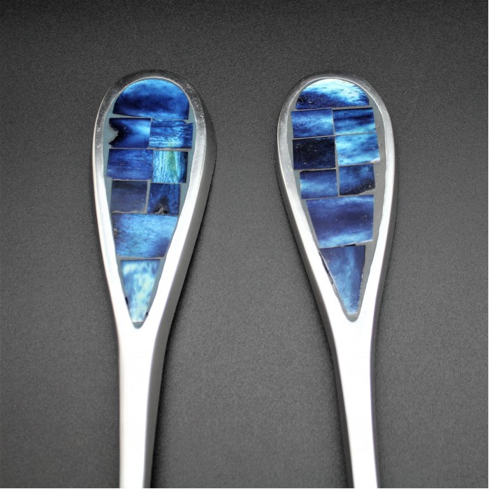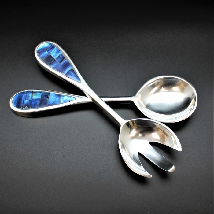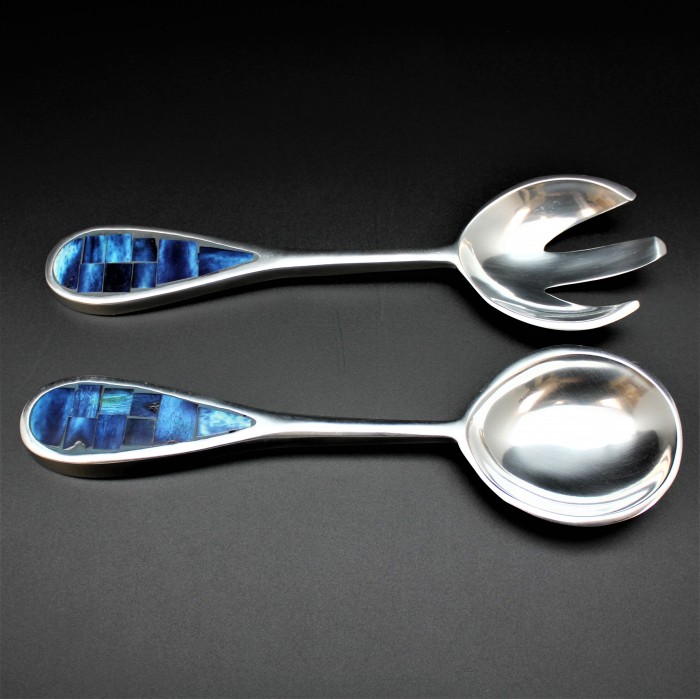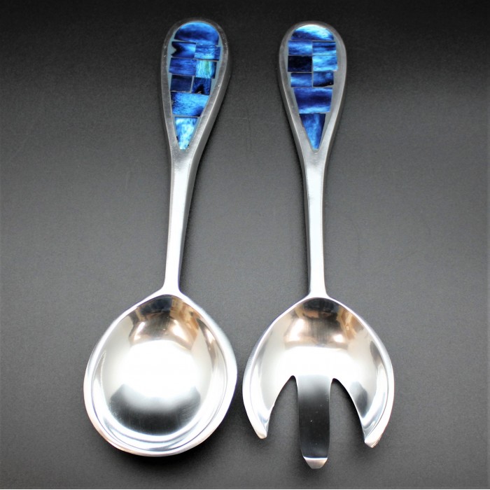 21566B- SERVING SET W/ AMBER GLASS INLAY