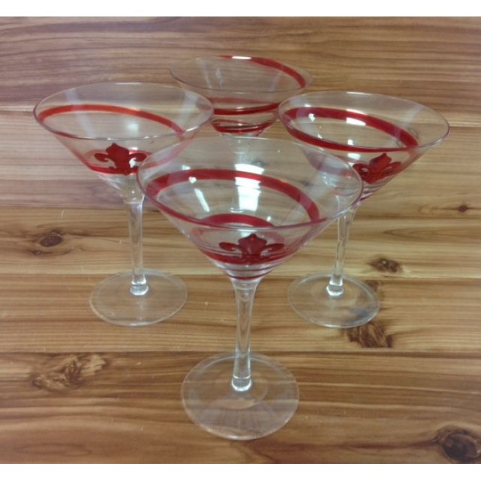 CLEAR W/RED SWIRL COCKTAIL GLASSES W/FDL set of (4)