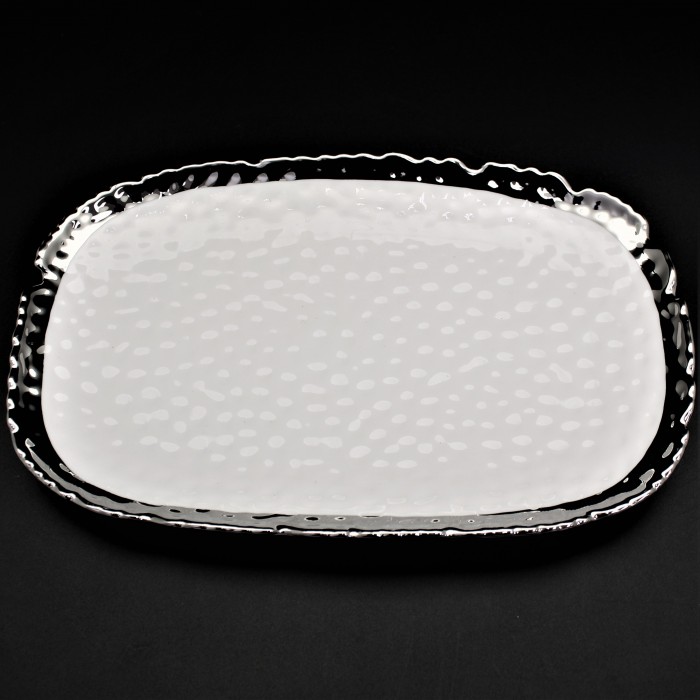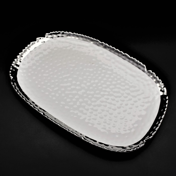WHITE PORCELAIN HAMMERED MEDIUM OVAL TRAY