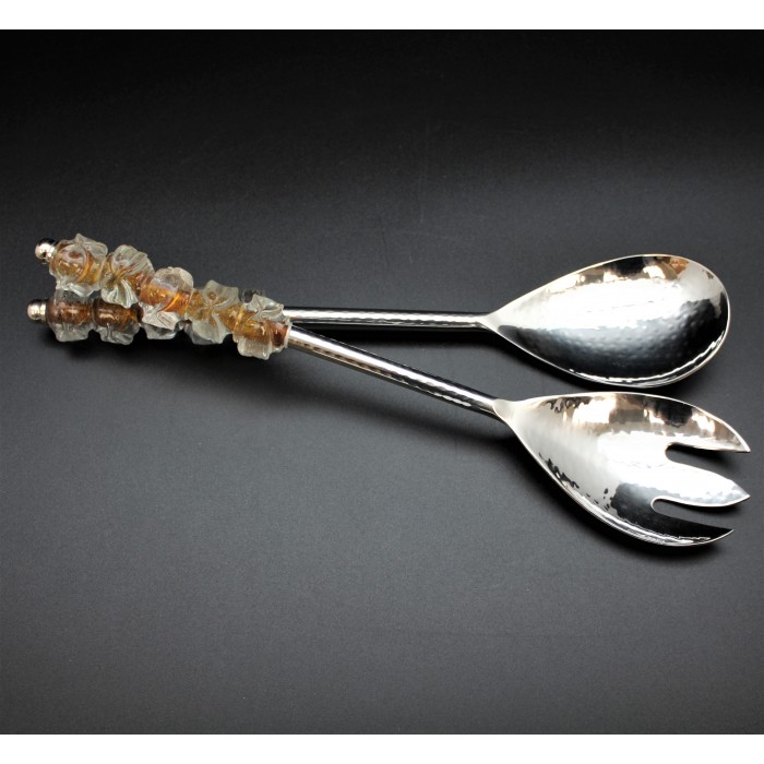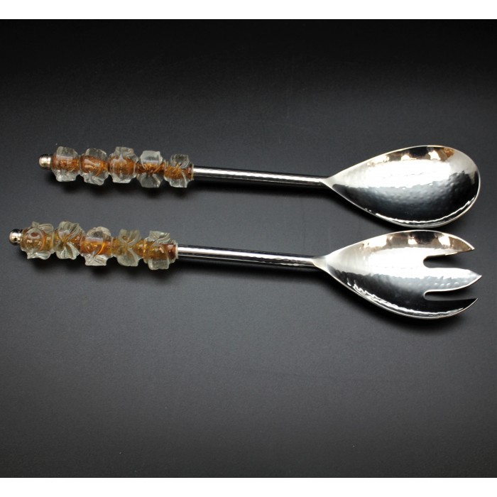 PLAIN SERVING SET W/ AMBER GLASS BEADS