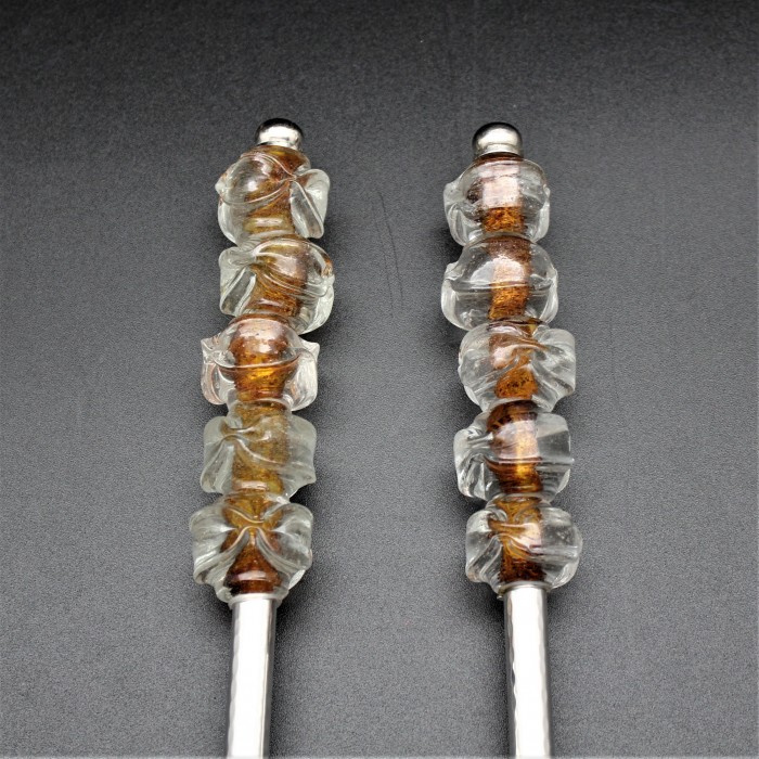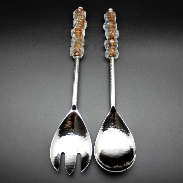 52247-PLAIN SERVING SET W/ AMBER GLASS BEADS