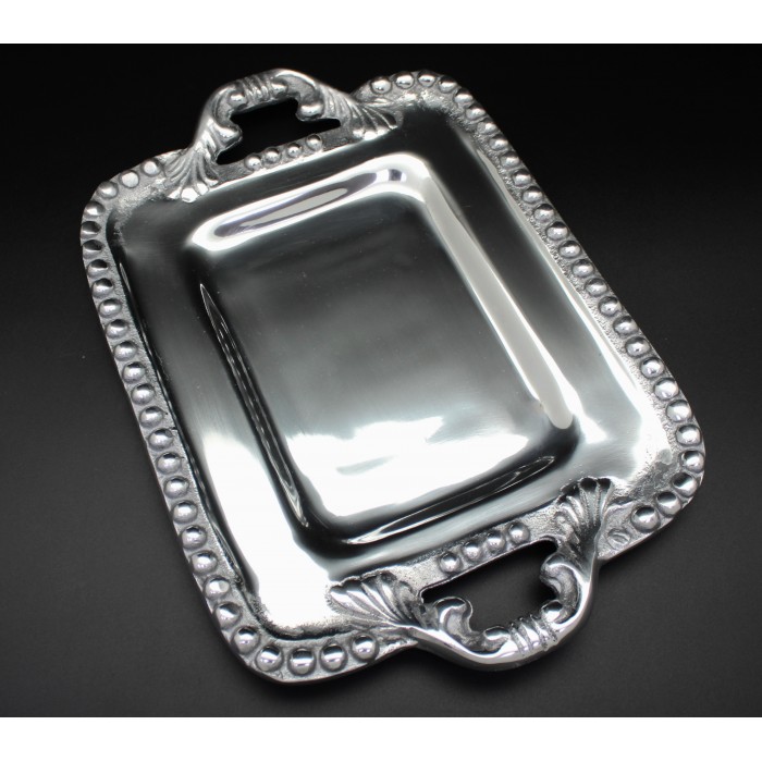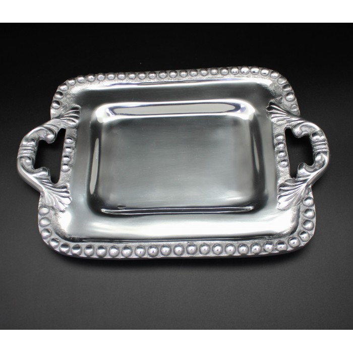 1273-BEADED SMALL RECT TRAY W/HANDLE