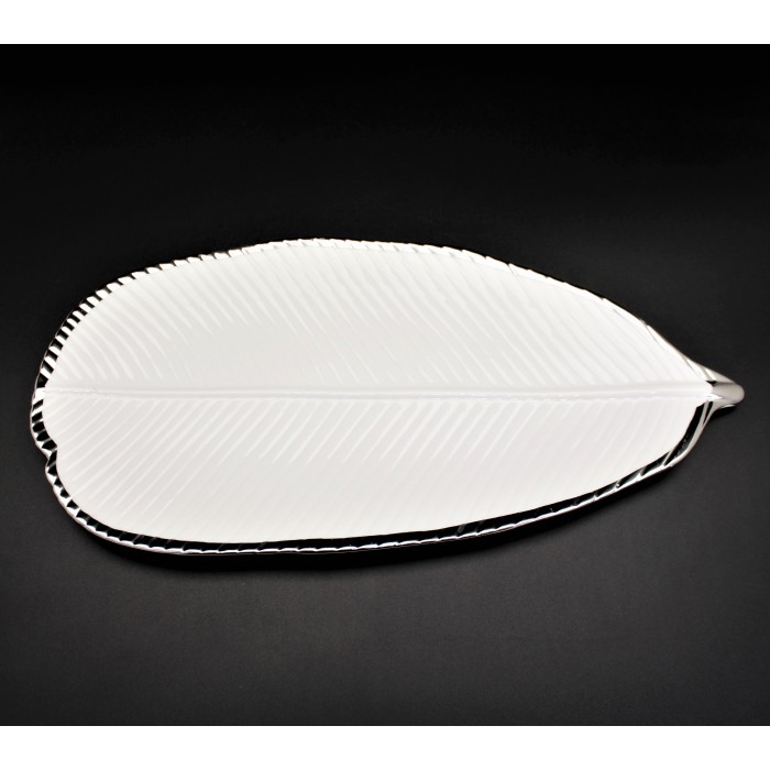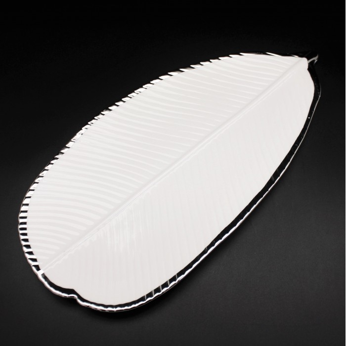 WH113-WHITE PORCELAIN LARGE LEAF TRAY (MINIMUM 2)