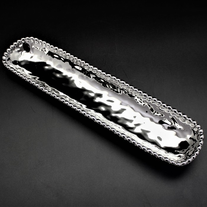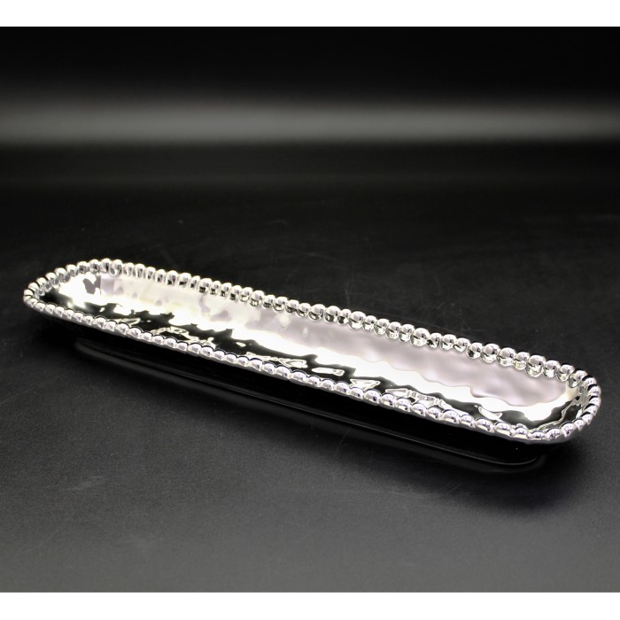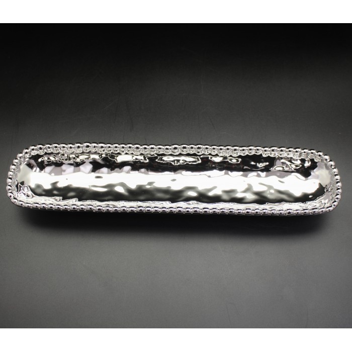 SILVER PORCELAIN BEADED CRACKER TRAY