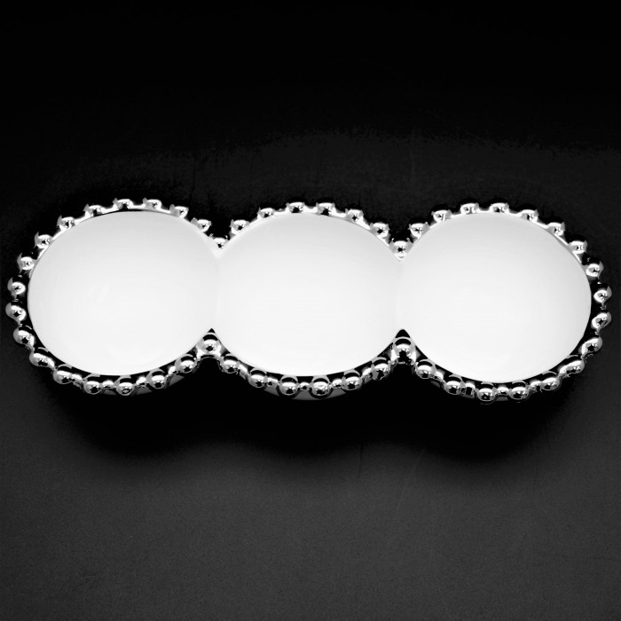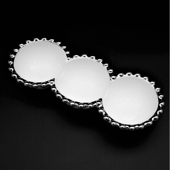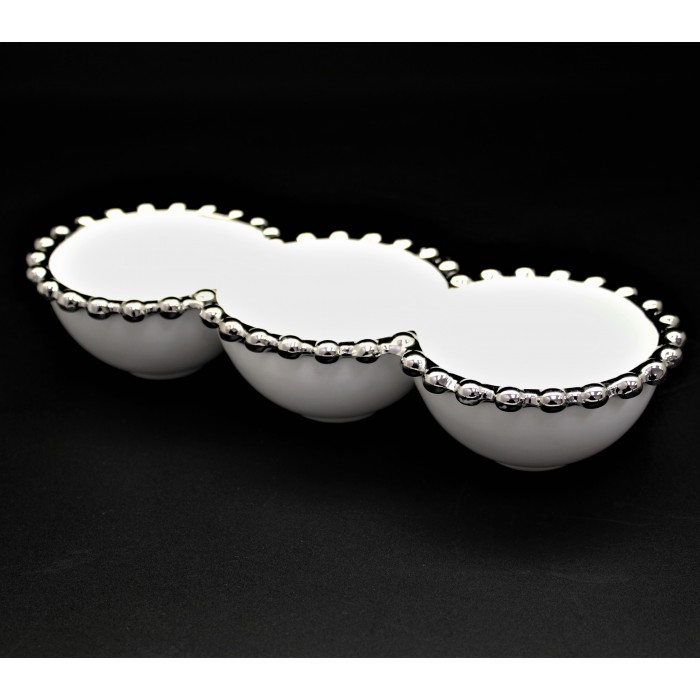 WHITE PORCELAIN BEADED 3 DIP TRAY