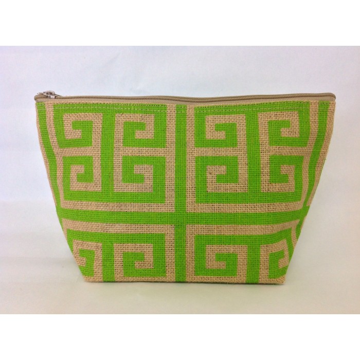 LIME GREEN & TAN GREEK KEY JUTE POUCH BAG
