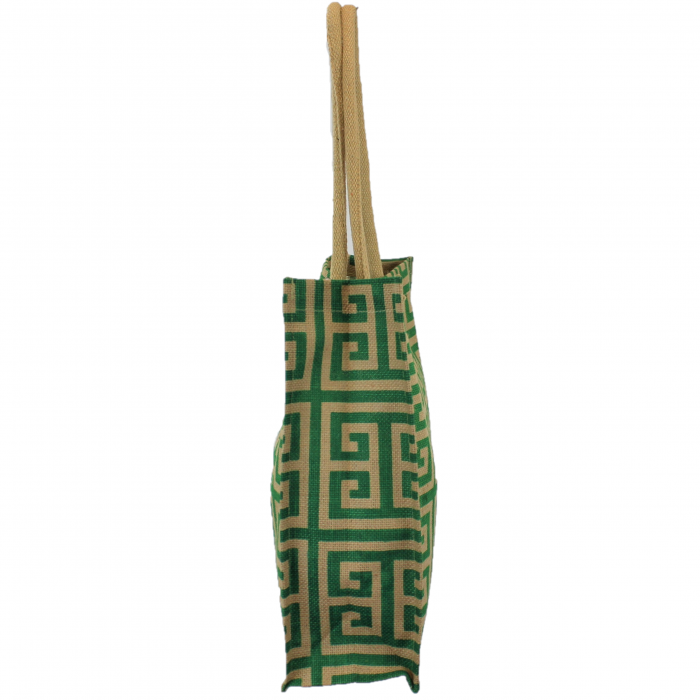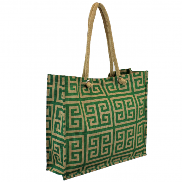 15- GREEN & TAN GREEK KEY JUTE BAG