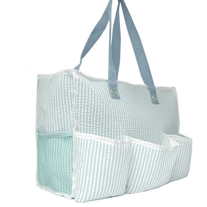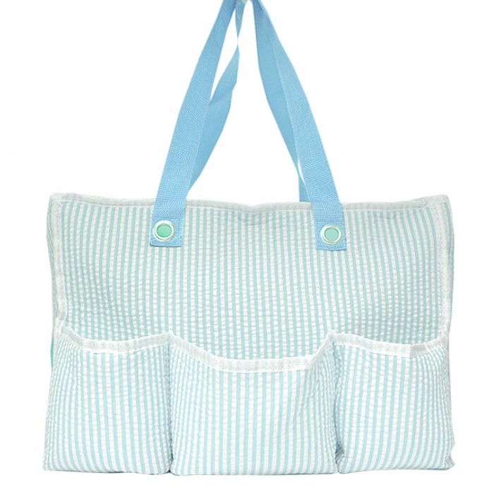 LT. BLUE SEER SUCKER DIAPER BAG / W 5 POCKETS