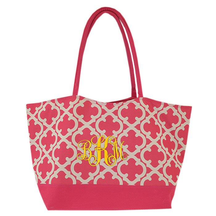 32646-PINK QUATREFOIL DESIGN SHOPPING OR BEACH BAG
