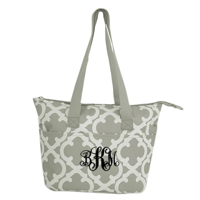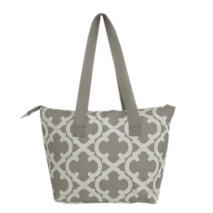 6044 - GREY QUATREFOIL DESIGN INSULATED LUNCH BAG