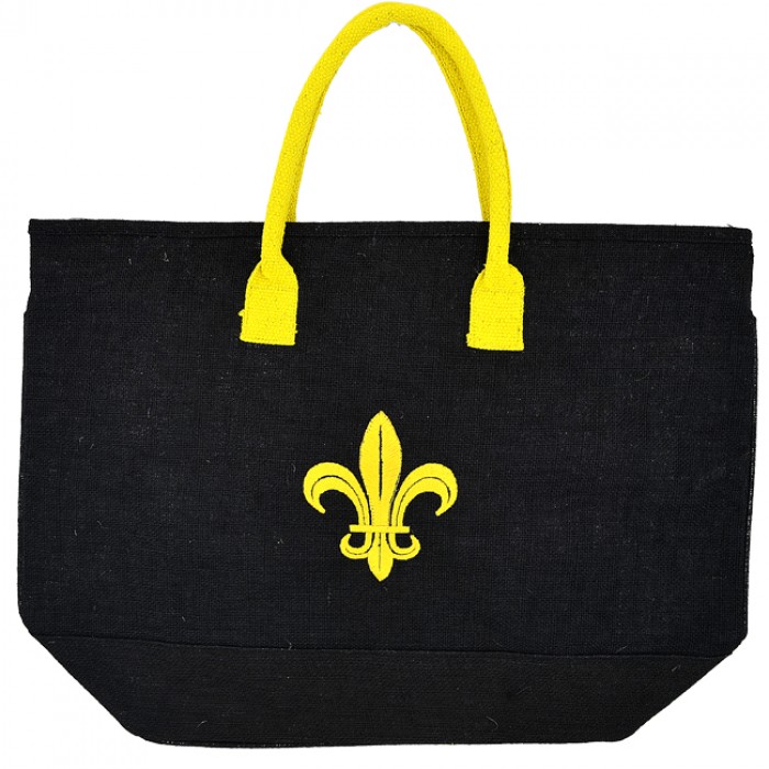 16-BK-Y-BLACK JUTE BAG W/YELLOW FLEUR DE LIS