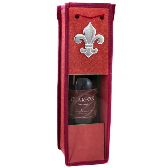 WINE BOTTLE HOLDER RED COLOR W/SILVER FLEUR DE LIS