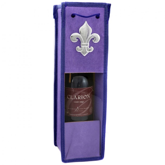 WINE BOTTLE HOLDER PURPLE COLOR W/SILVER FLEUR DE LIS
