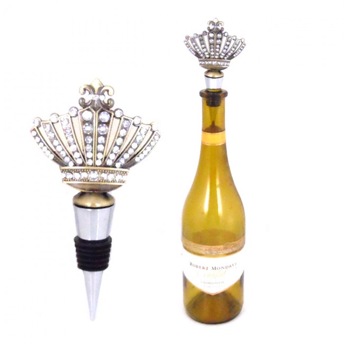 CLEAR STONE WINE STOPPER / W CROWN DESIGN