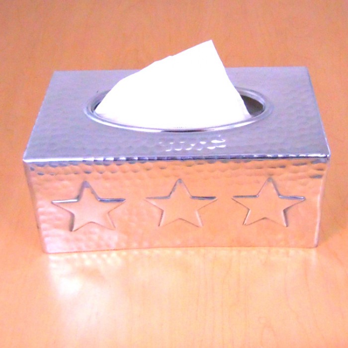 SILVER RECTANGULAR STAR TISSUE BOX ( HAMMERED )