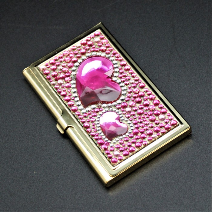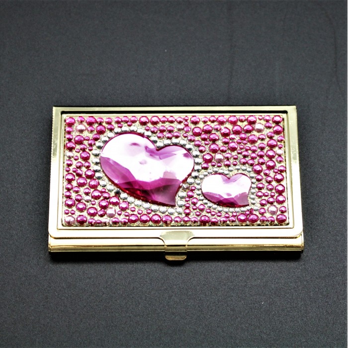 PURPLE HEART BUSINESS CARD HOLDER / W PINK CRYSTAL