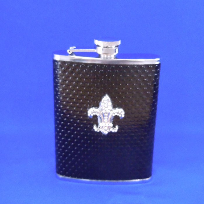 ZG6019-SHINY BLACK LEATHER CRYSTAL FDL FLASK 8 OZ