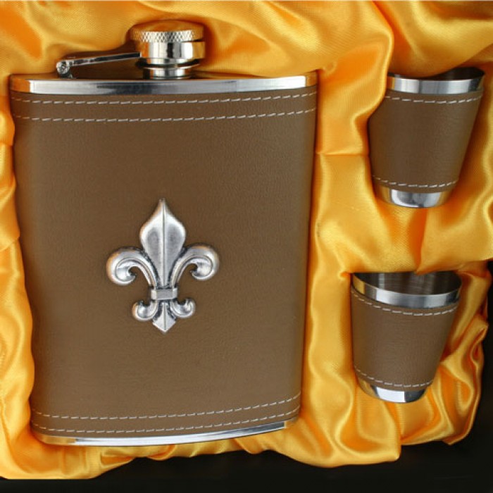 FLASK 8OZ. BROWN W/FDL 3PC. SET