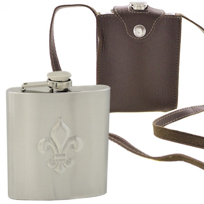 FDL STAINLESS STEEL HIP FLASK 9 OZ./ W BROWN LEATHER COVER