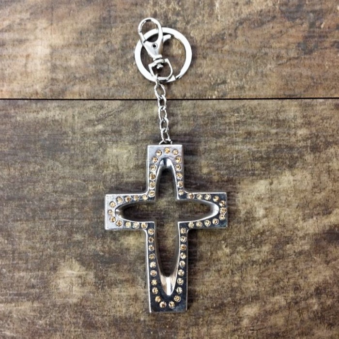 AMBER CRYSTAL CROSS / SILVER KEY CHAIN HOLDER