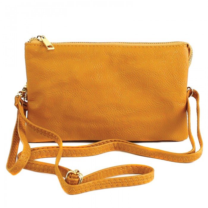 9065- YELLOW PU LEATHER TRI POCKET CLUTCH / CROSS BODY BAG