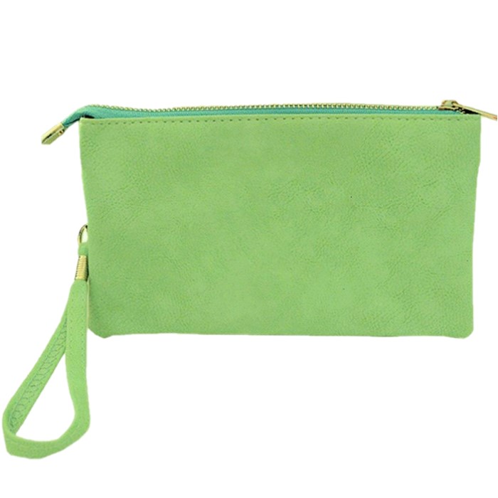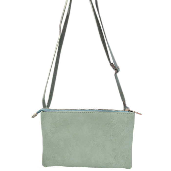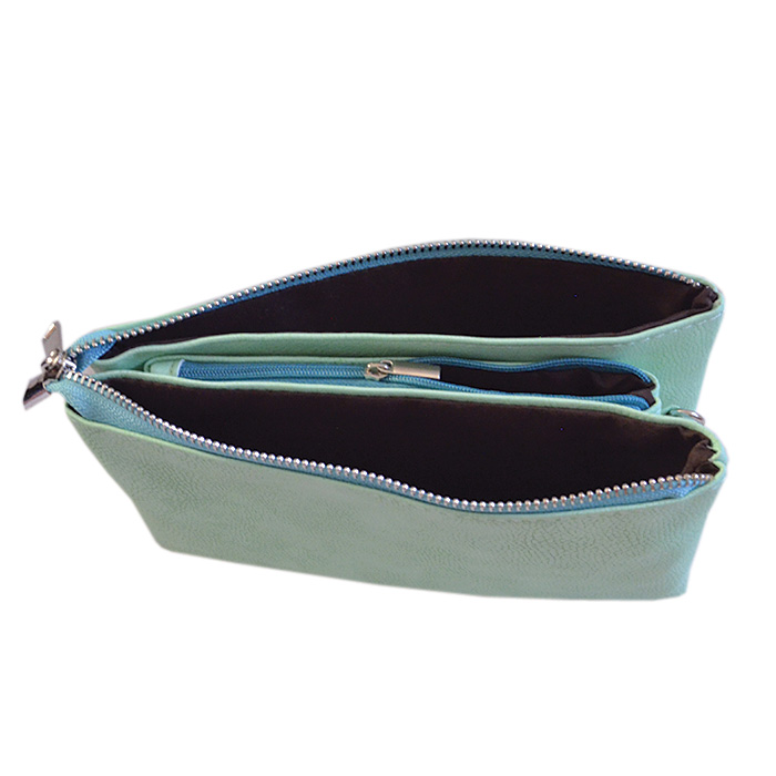 MINT PU LEATHER TRI POCKET CLUTCH / CROSS BODY BAG