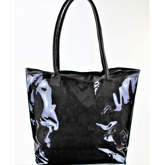 BLACK TRANSPARENT SHOPPING OR BEACH BAG